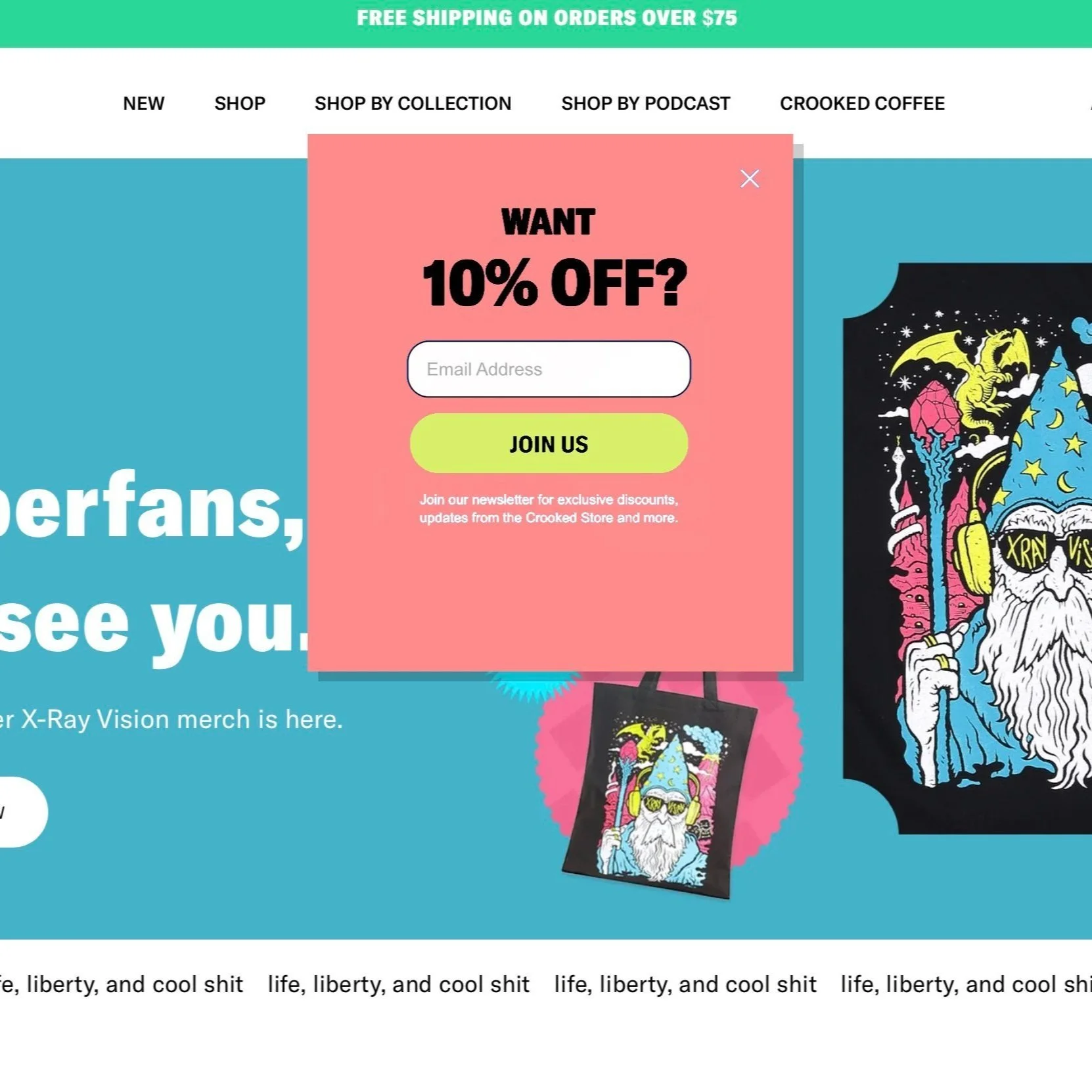 The Crooked store and supporting promotional mechanisms were dynamic and could shift with the rapidly evolving news cycle. We worked with Shopify to implement the newest methods of store and email optimization.