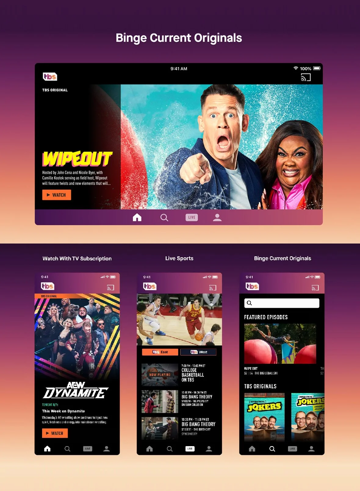 Warner Bros. TNT and TBS networks shared a common app. I managed a team of designers that maintained and updated these products. Building consensus between product, marketing and leadership teams was crucial and aided by a robust Figma prototyping workflow.
