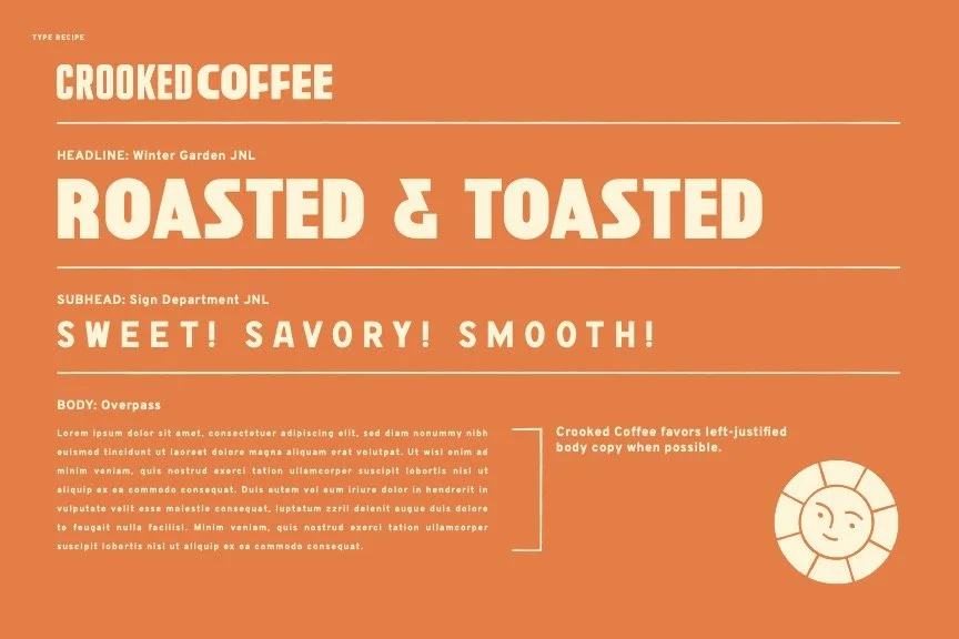 I worked with Crooked Media’s marketing team to develop the Crooked Coffee brand, a subscription services offered to fans (they preferred the dark roast). It was important that the brand captured the spirit of Crooked podcasts but was also light and approachable - some mornings are rough. We created a cheeky brand (literally and figuratively) that connected with fans and established a new revenue stream for Crooked.