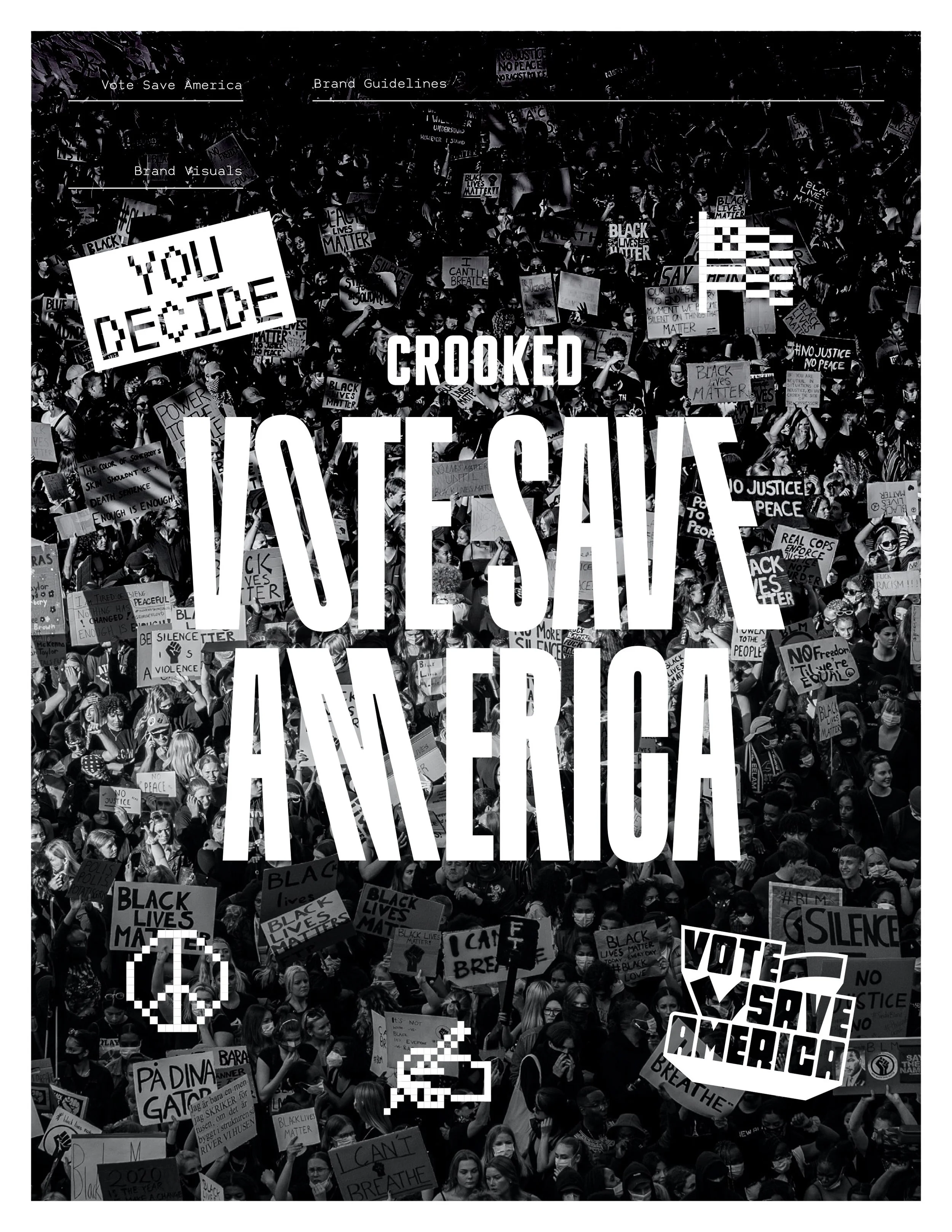 I developed the brands and style guides for Crooked Media and Vote Save America, its voter outreach program. These brands had to work with design teams and vendors across the country with varying degrees of design experience. These systems were built to respond quickly to changes in the news, so the brands themselves and the CMS’ the sites were built within were able to react in realtime (new merch releases, new funds spun up quickly to meet the moment).